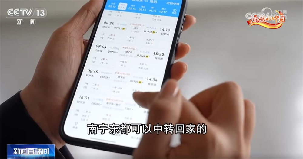 刘卿卿:昆明南可以有很多中转方案,比如说去南宁、南宁东都可以中转回家的。